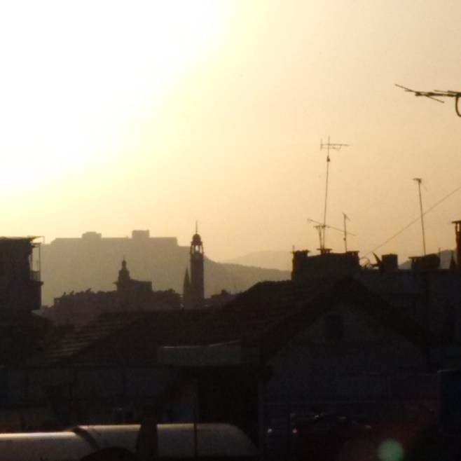 The Orwellian outline of the Presidential Palace lowering over the city of Damascus