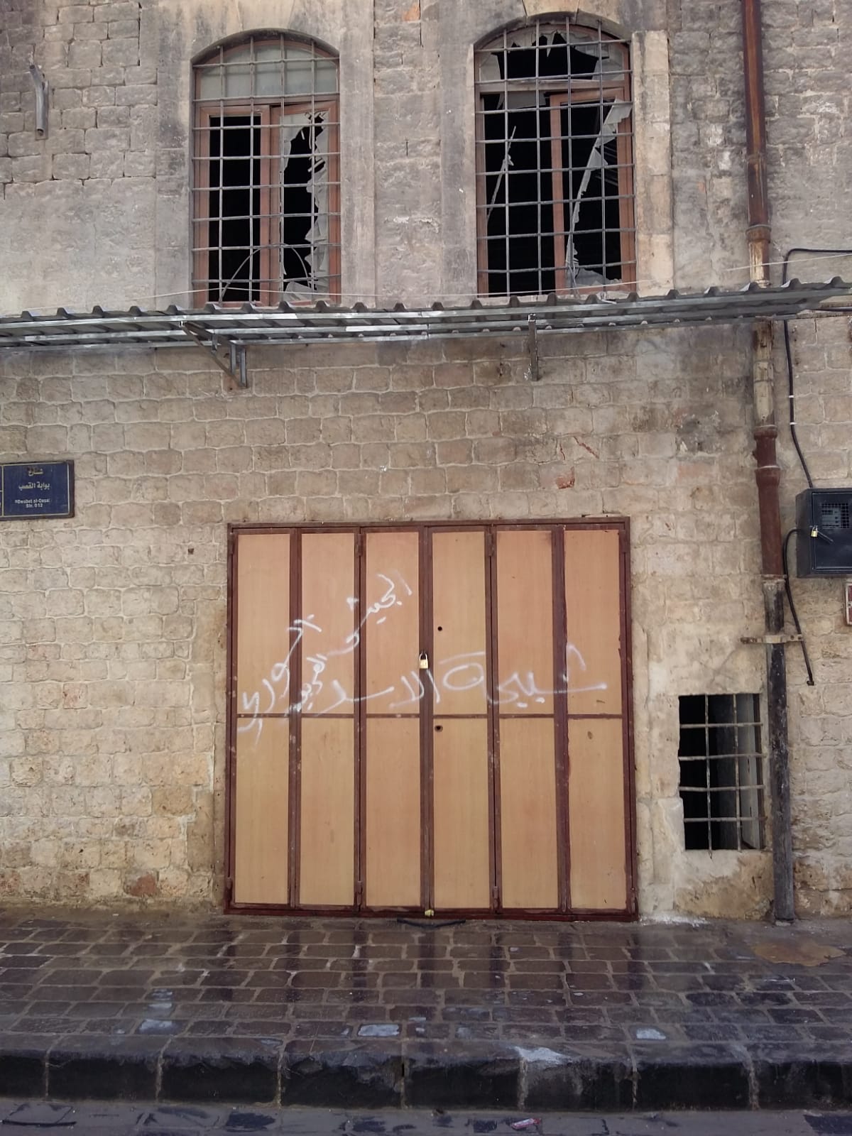 Shuttered shop-front graffiti by Assad’s shabiha